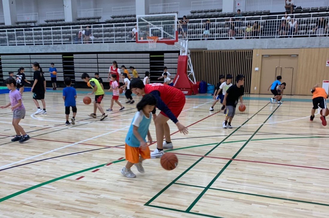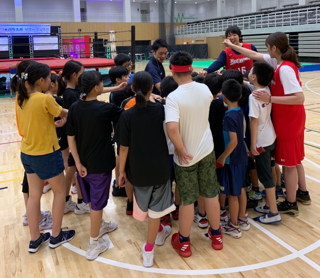 川崎の女子バスケットボールチーム“富士通レッドウェーブ”の選手やスタッフにバスケットボール上達のコツを教えてもらった後は